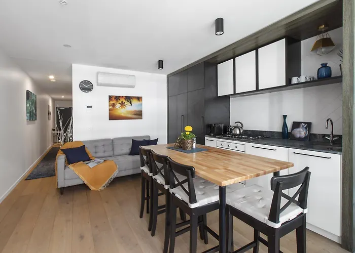 The 50 m² Central Simplicity - Modern Inner-City Living is a 10-minute ride from Old Treasury Building and boasts spa facilities such as an indoor pool. The apartment features Wi-Fi throughout the property.